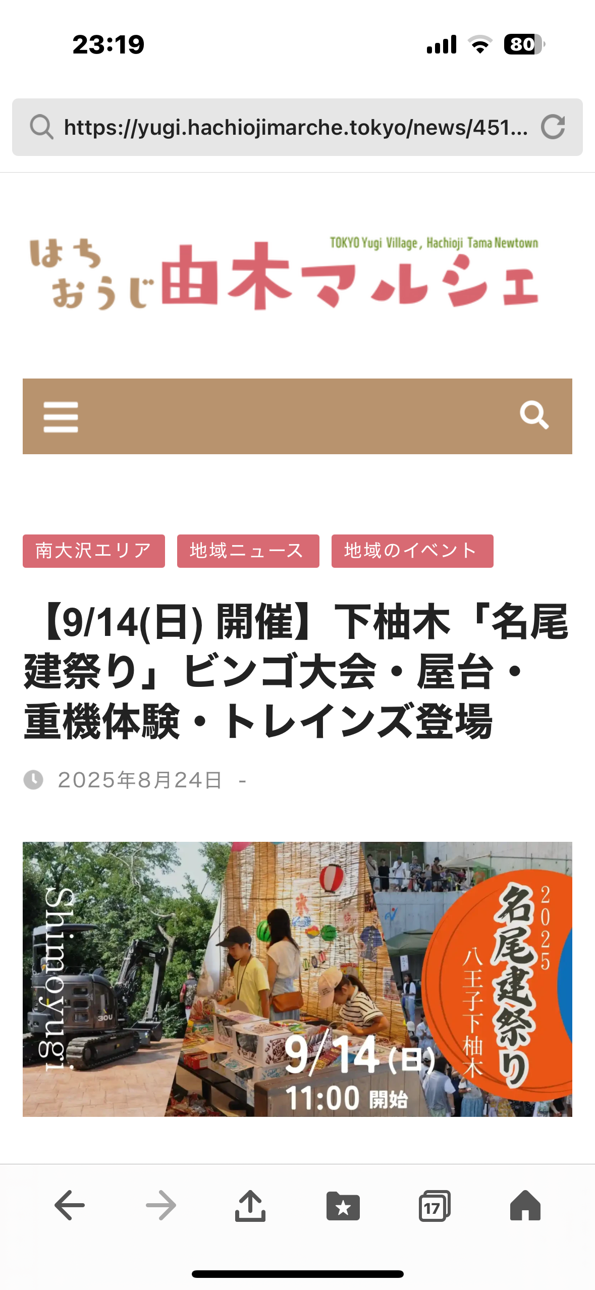 今では会社本社のある南大沢駅周辺の方々が名尾建と言う土木会社があります!っと言う事を認知してくれている事が凄く俺は嬉しいです。今回一番嬉しい事ははちおうじ由木マルシェ!南大沢つうしん!プロバスケットボールチームの東京八王子ビートレインズなど名尾建祭が9月14日にやりますよ!っと宣伝してくれる様になりました。この様な事が俺はめちゃくちゃ嬉しいです。