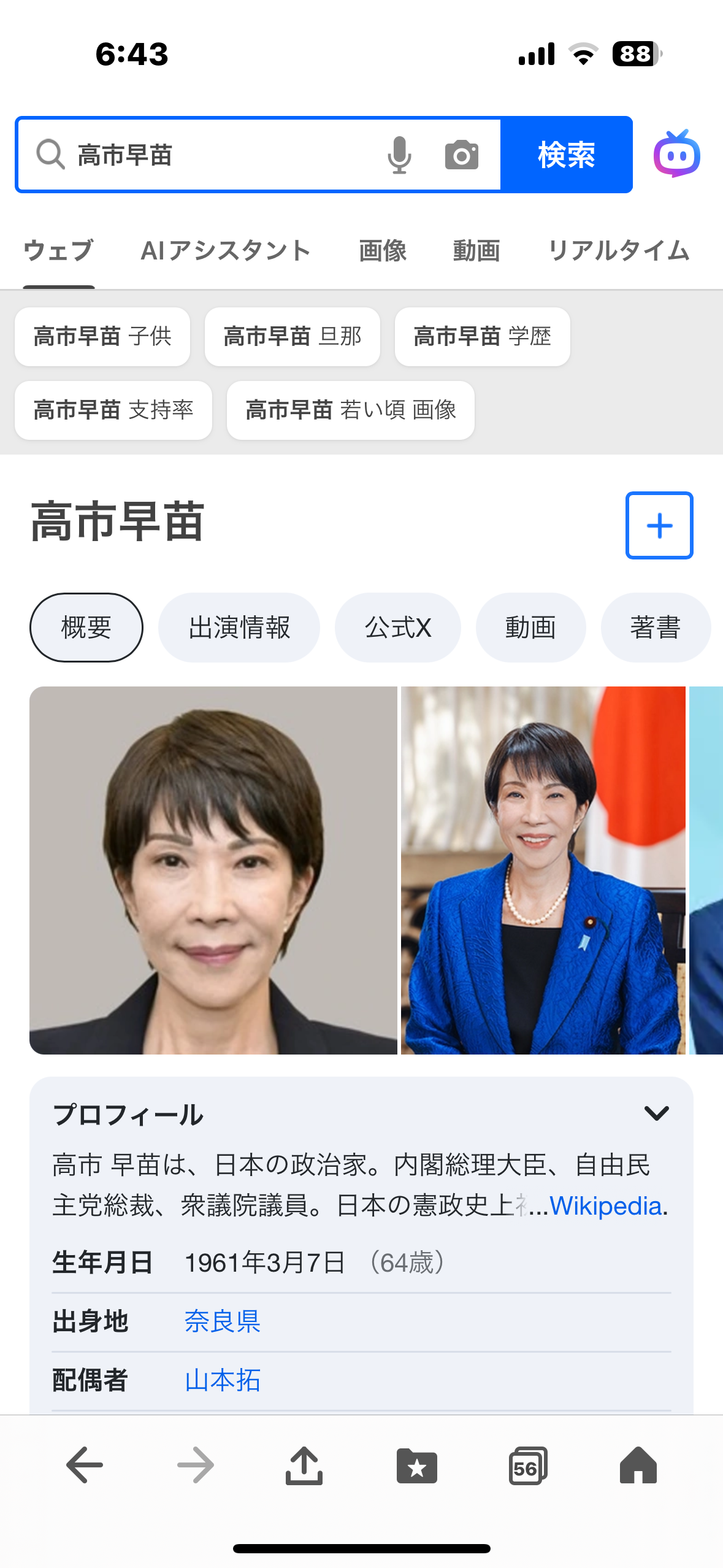 高市早苗総理!久しぶりにまともな人が出て来ました。しかし自民党からね。俺?俺は確実に右!隠す事もなく右だ!だって日本が大好きだし、日本人として生まれて来て誇りに想うしね。恥ずかしながら58歳の私ですが選挙には全く興味がなかったです。
